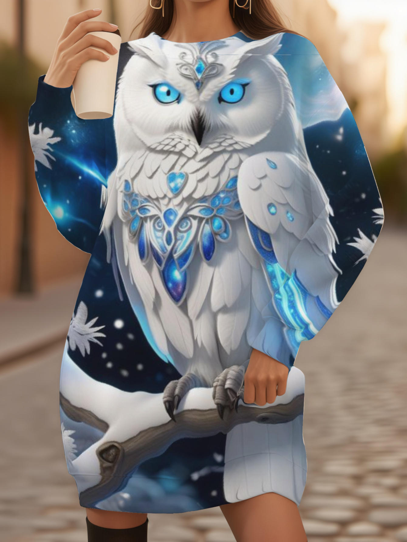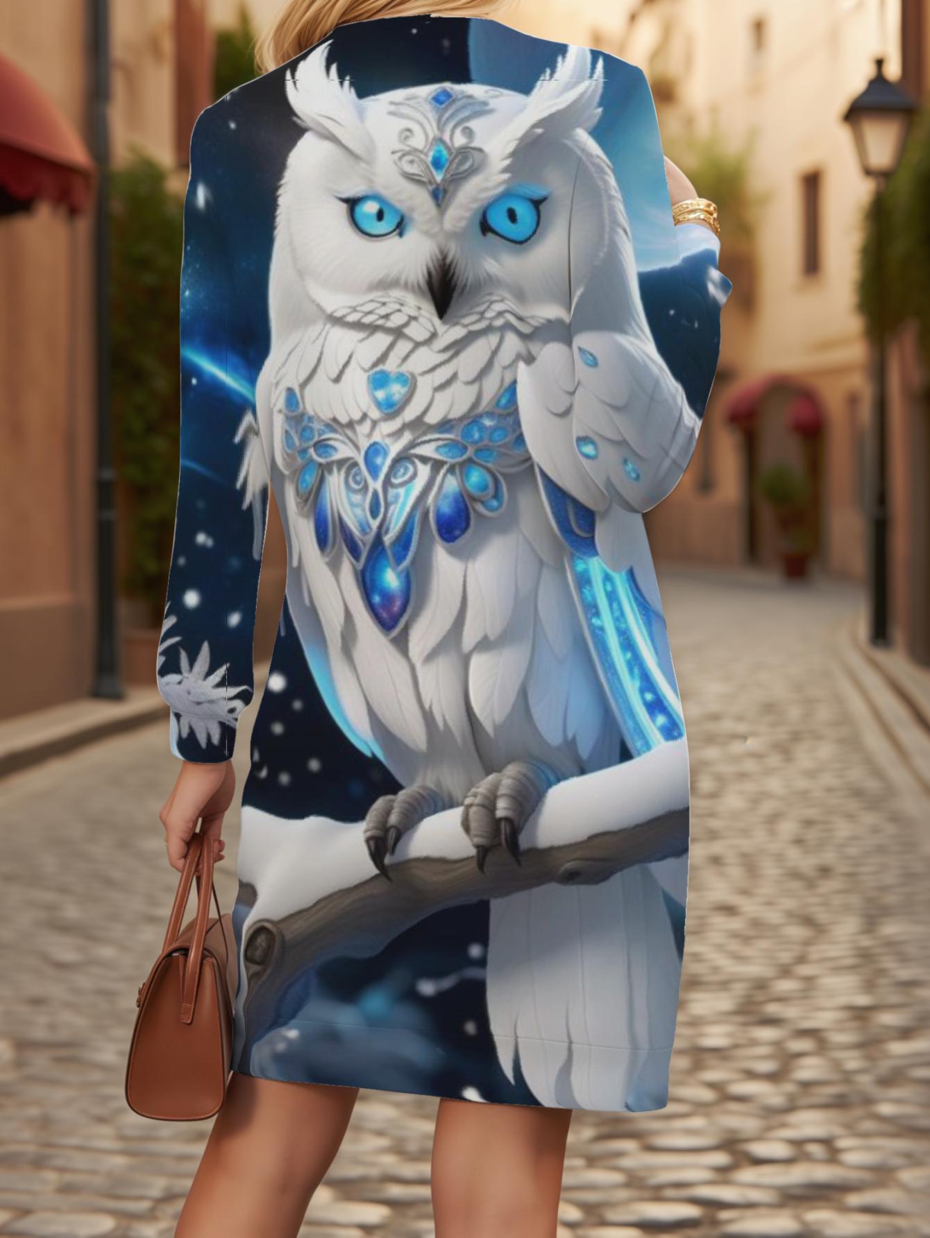 Casual Long Sweatshirt for Plus Size Women Featuring a Vibrant Magical Owl Design, Perfect for Winter. This Regular Fit Pullover Has Long Sleeves, Is Machine Washable, And Is Easy to Maintain with Its 3D Printed Fabric., long sweatshirt dress, Cozy