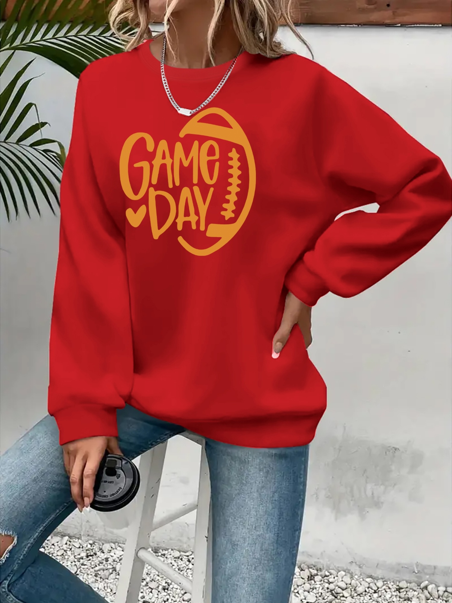 Elegant Women'S Game Day Crew Neck Sweatshirt | 260g, Long Sleeve, Geometric-Pattern, FallWinter Collection, Casual Style, Regular Fit