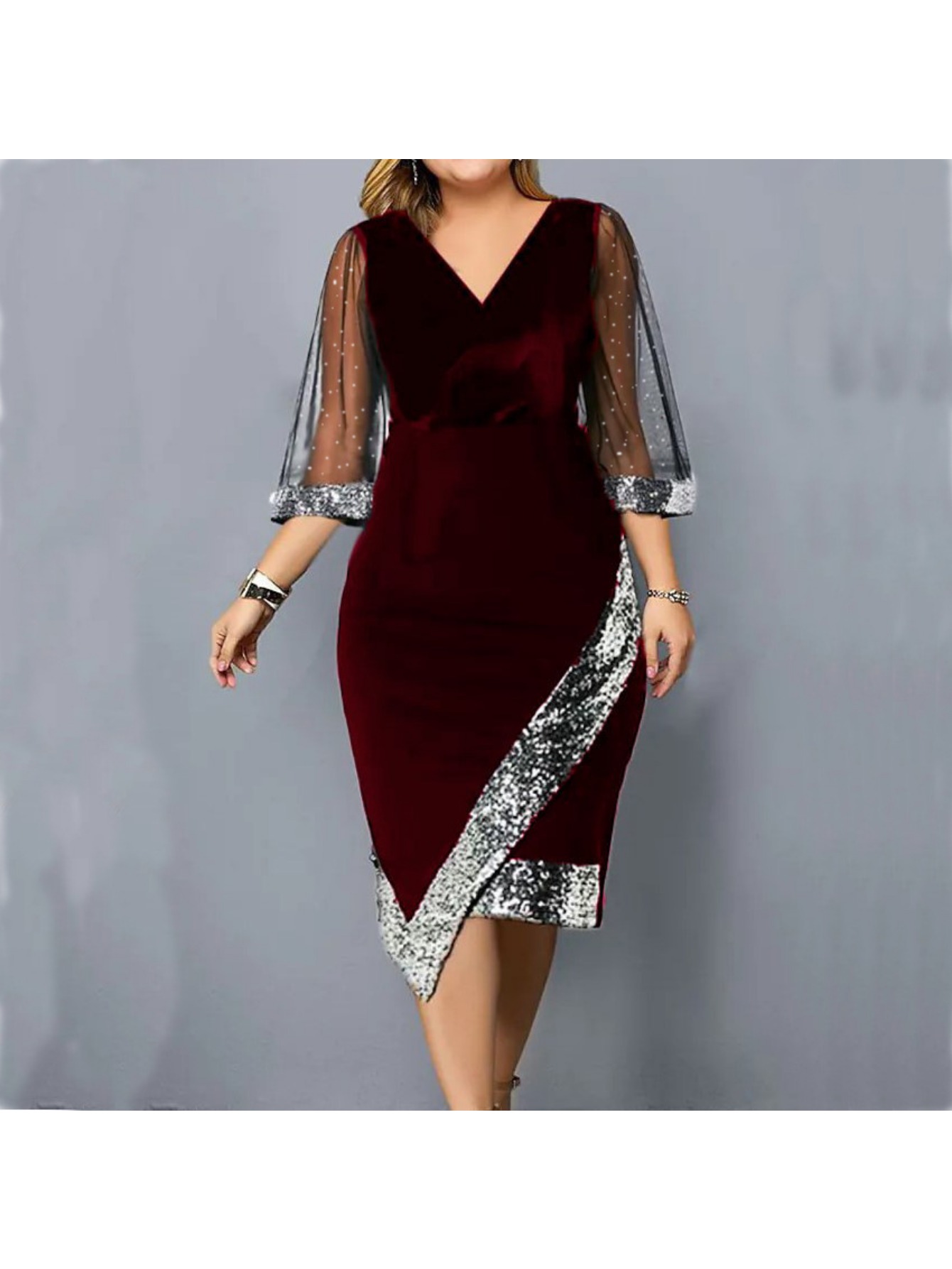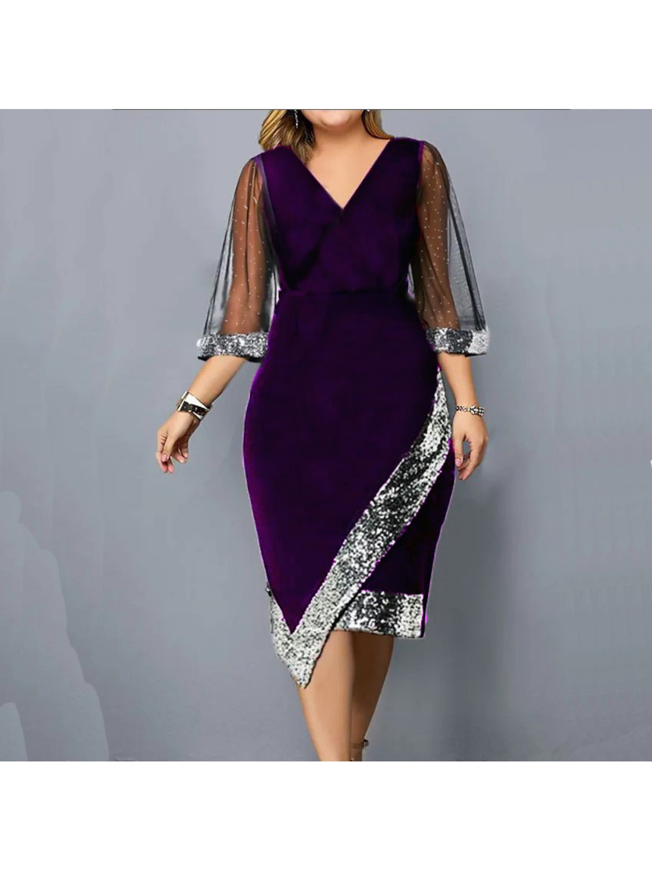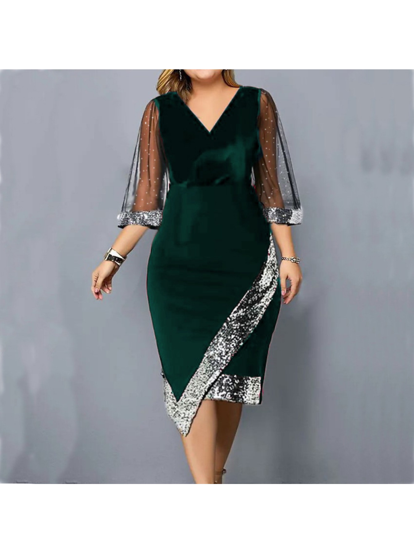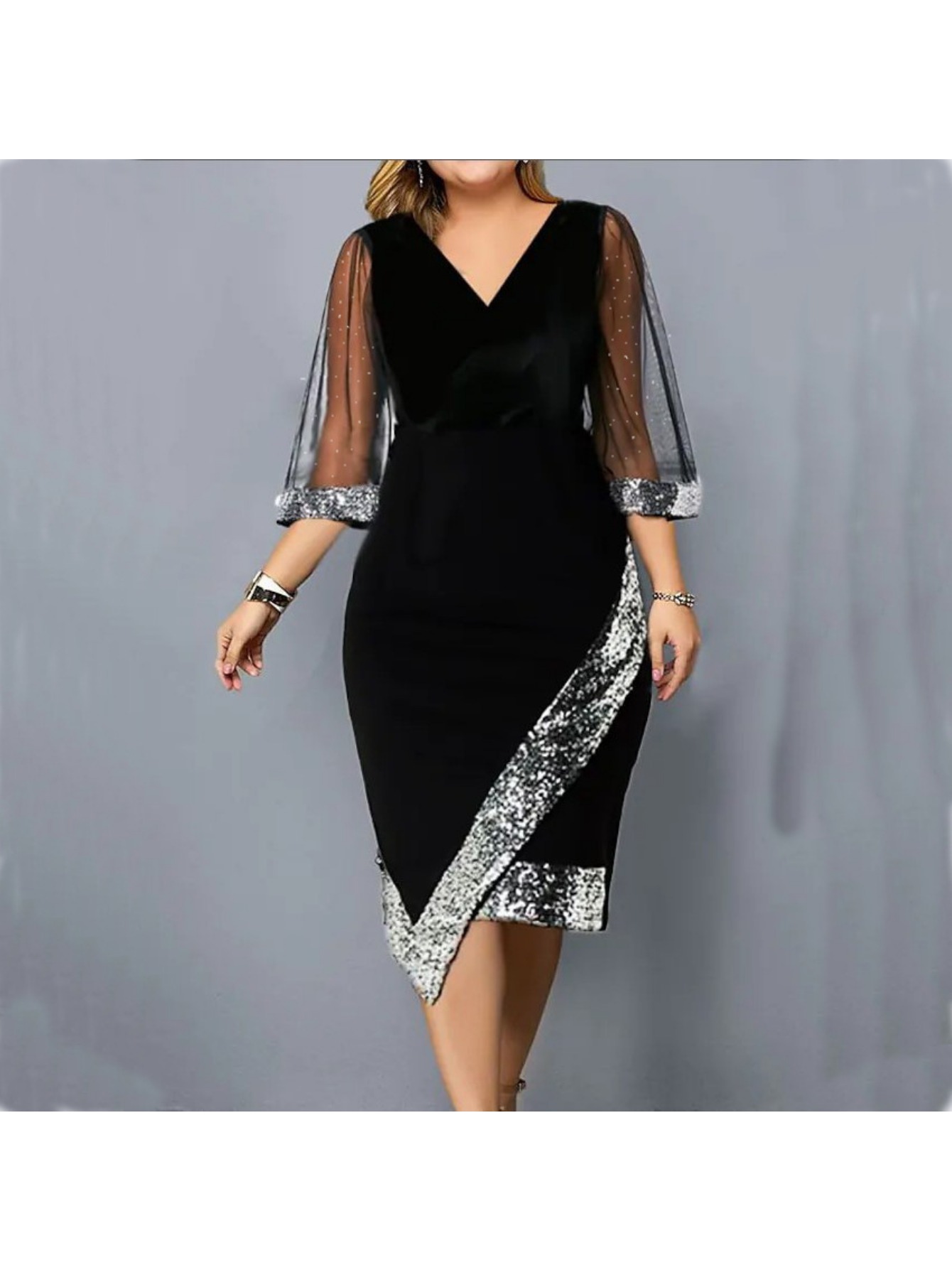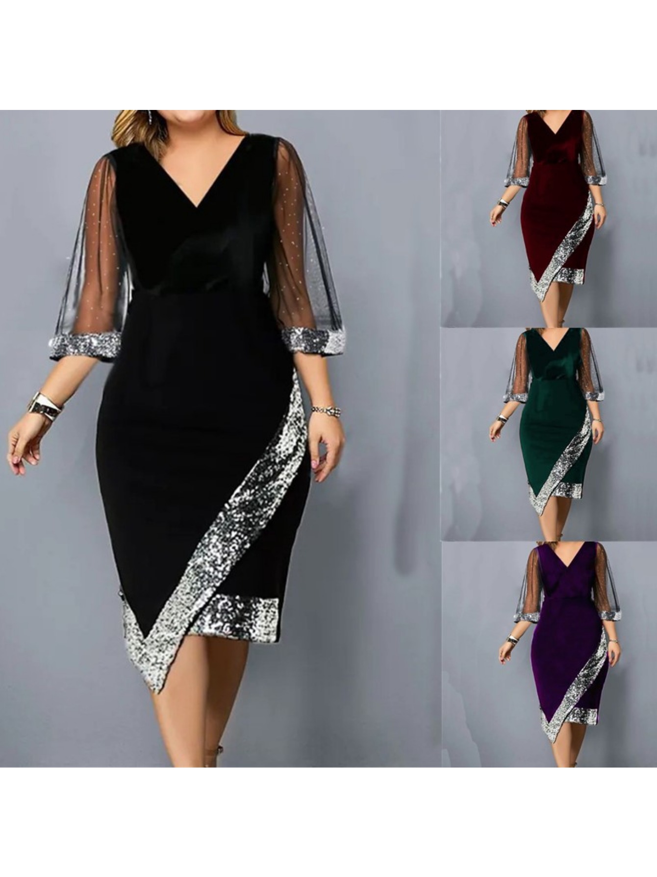 Elegant Velvet Sequined Mesh Dress for Women | Large-Sized, Irregular Pattern, See-Through Design, Perfect for Parties and Weekend Casual