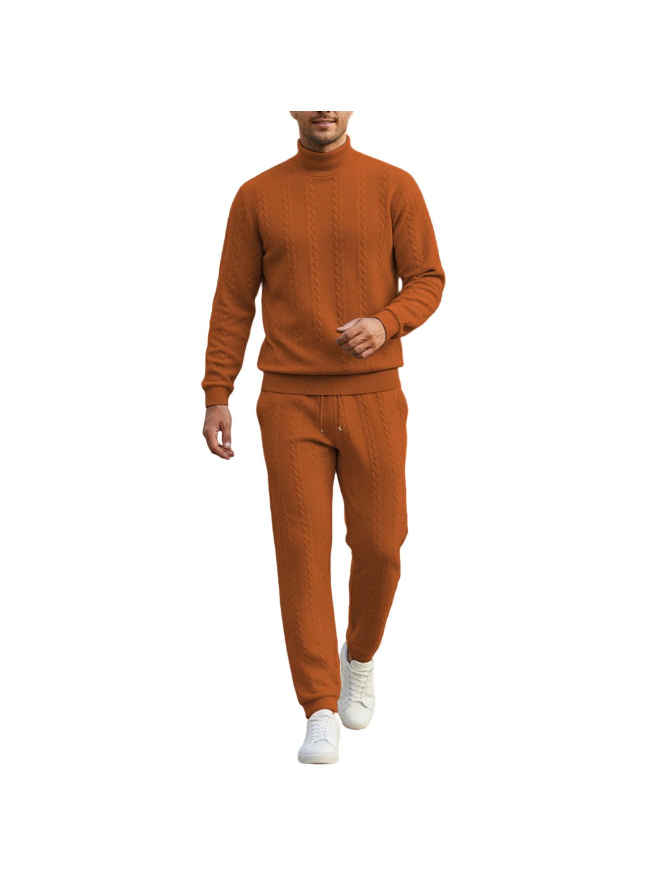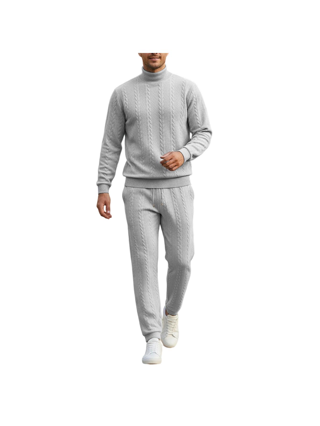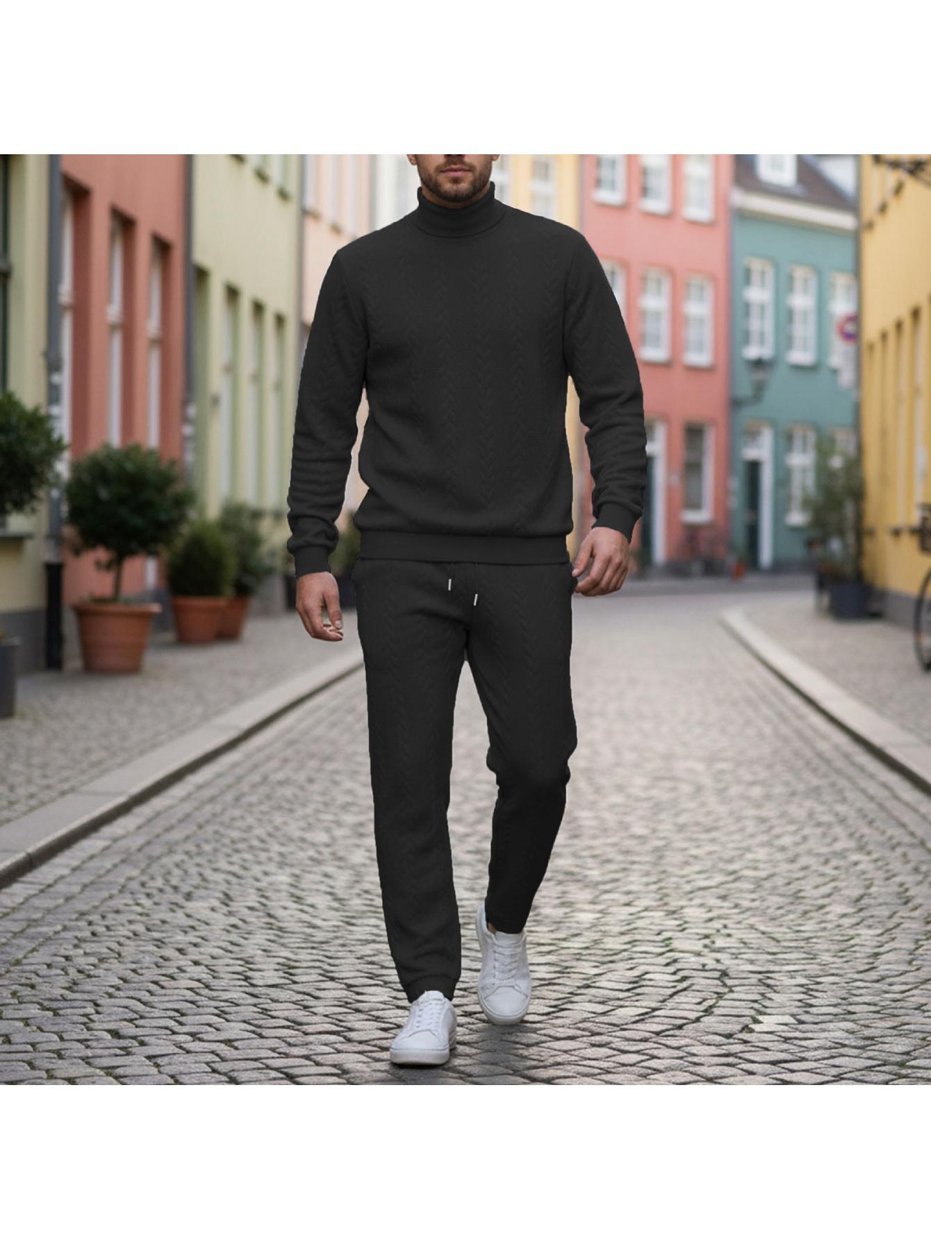 Men Casual Fashion Solid High Neck Knit Long Sleeved Warm Set Stand Collar Tops