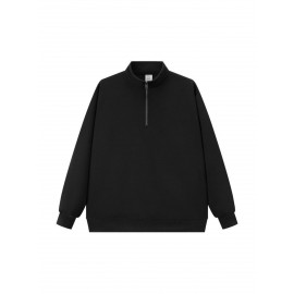 Standing Collar Half-Zip Hoodie for Men | Loose Fit, Casual Style with Pockets and Long Sleeves