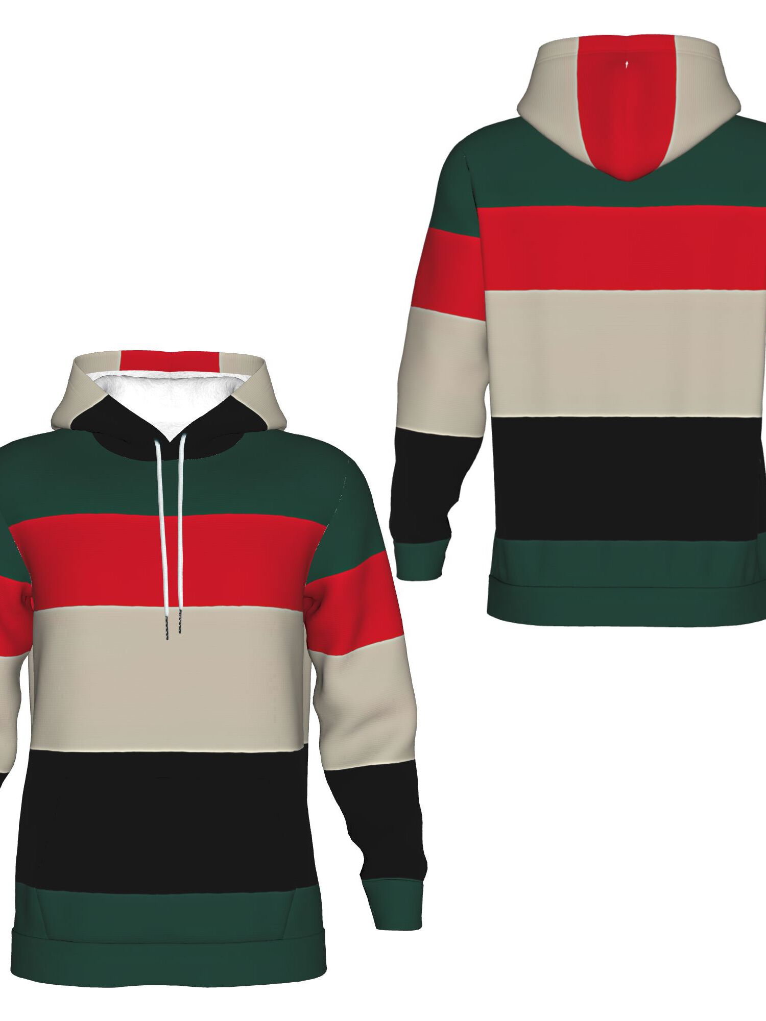 Men's Spooky Animal & Multicolor Striped Hoodie - Green/Red/Beige/Black/White All-Over Print Oversized Streetwear Sweatshirt with Front Pocket, Loose Fit Casual Wear & Hooded Pullover for Themed Events