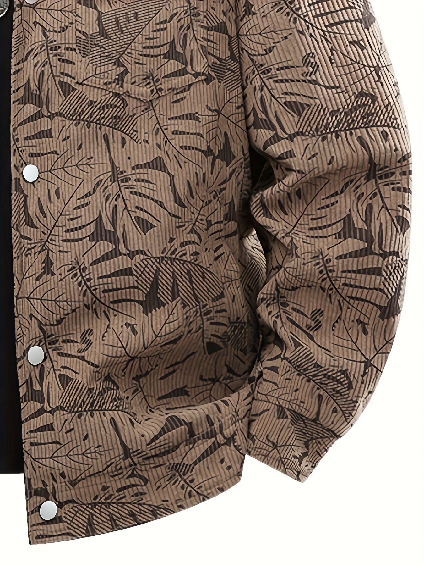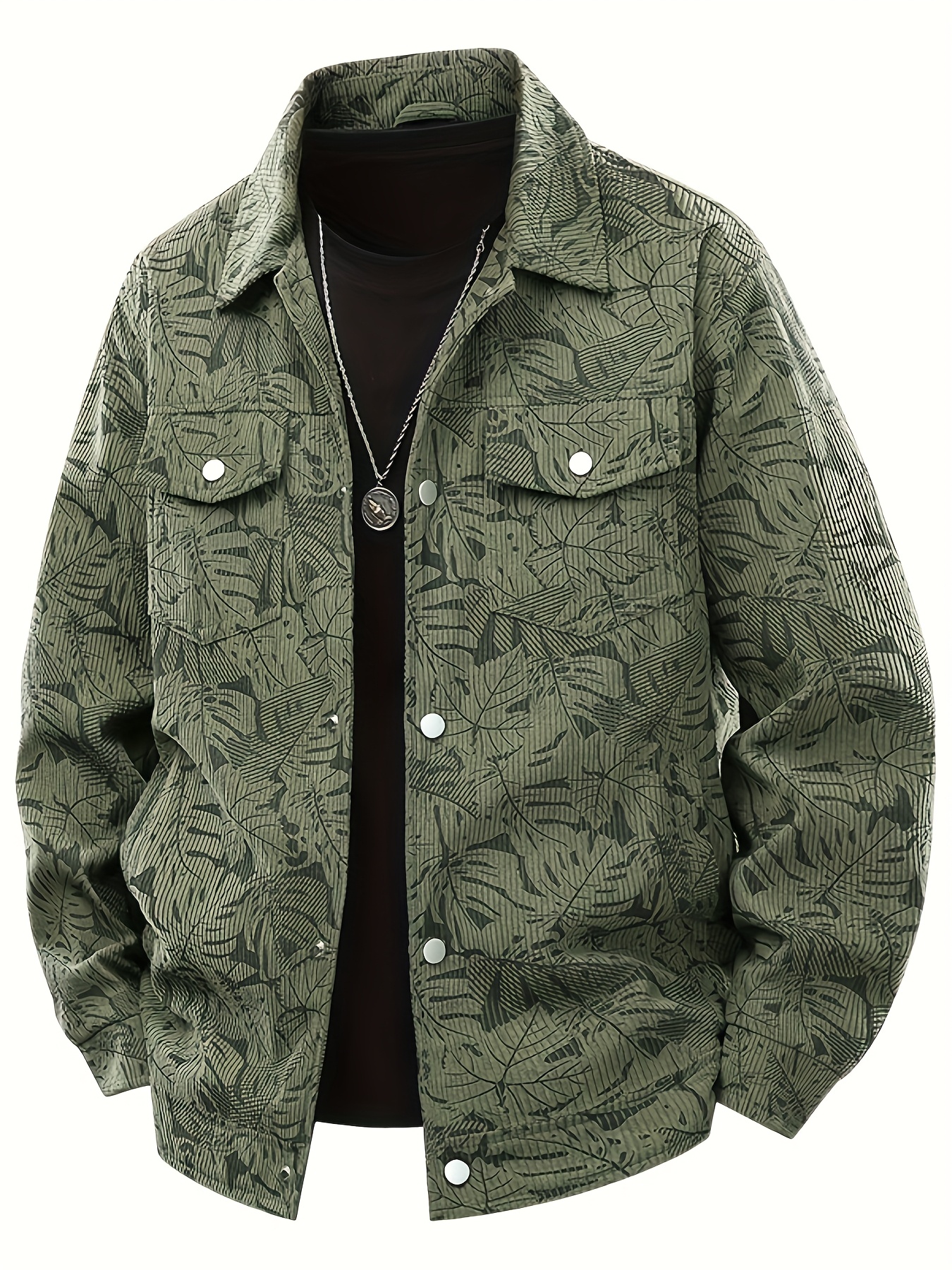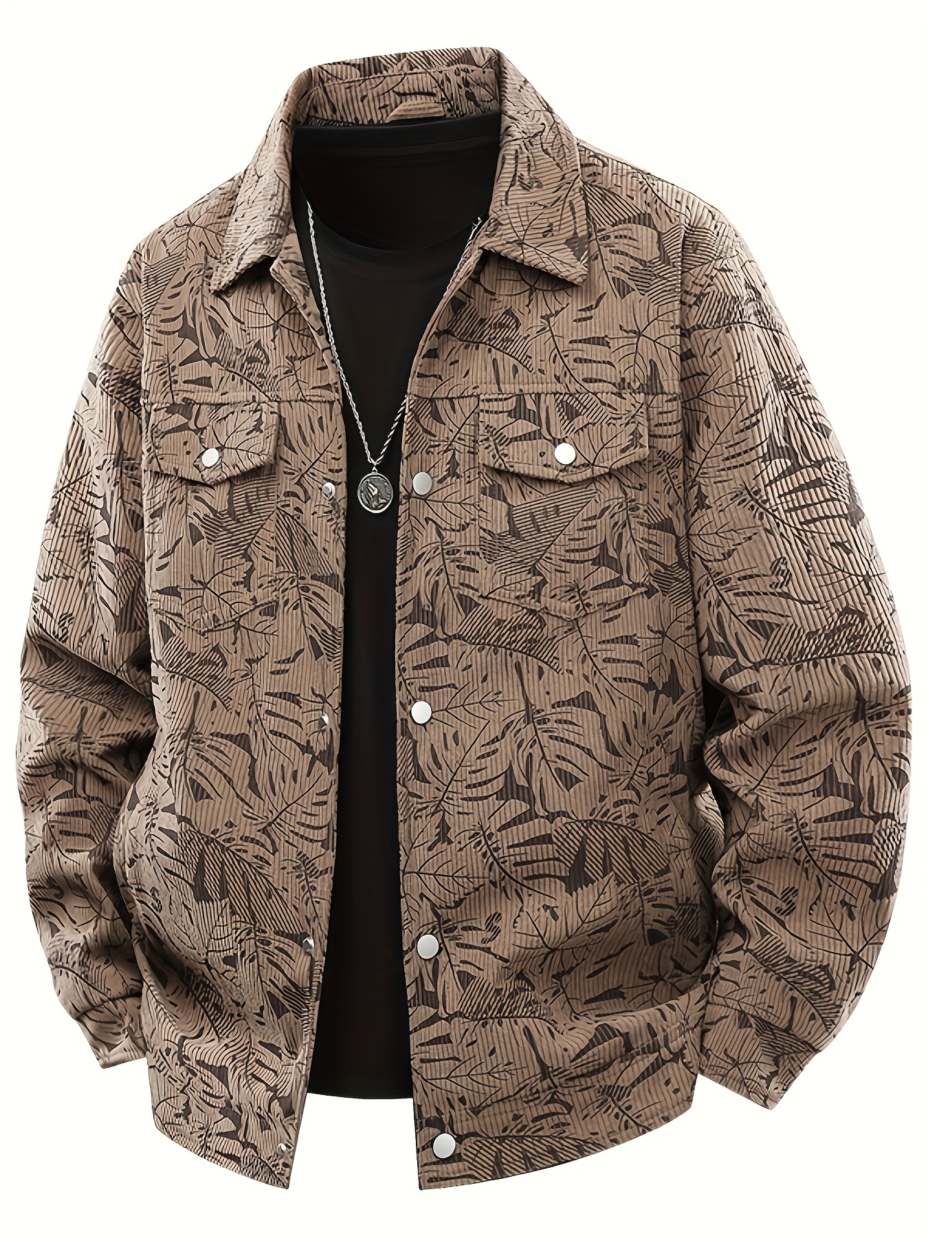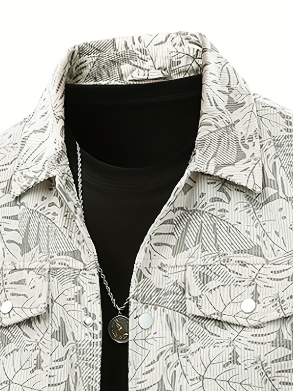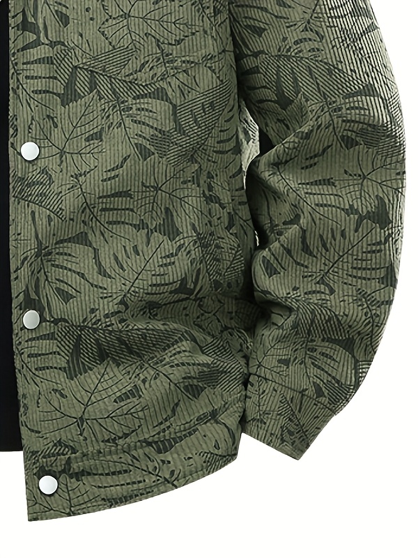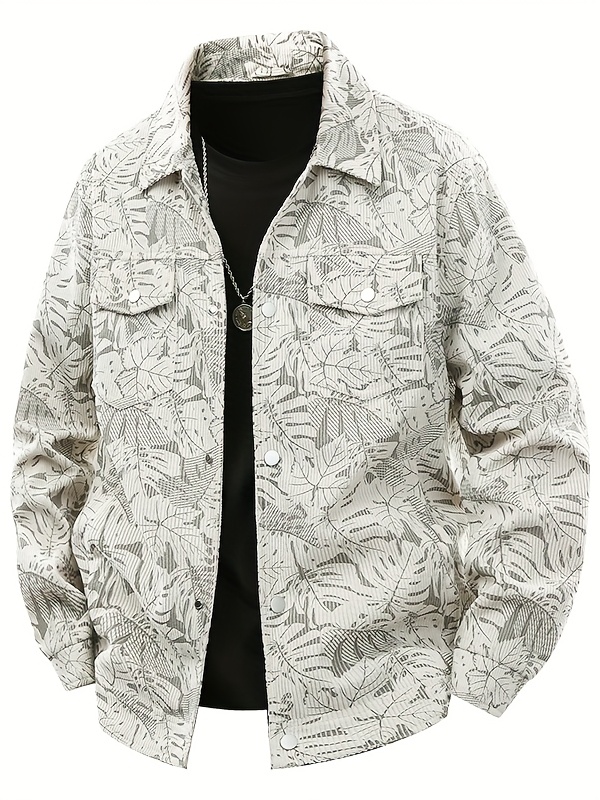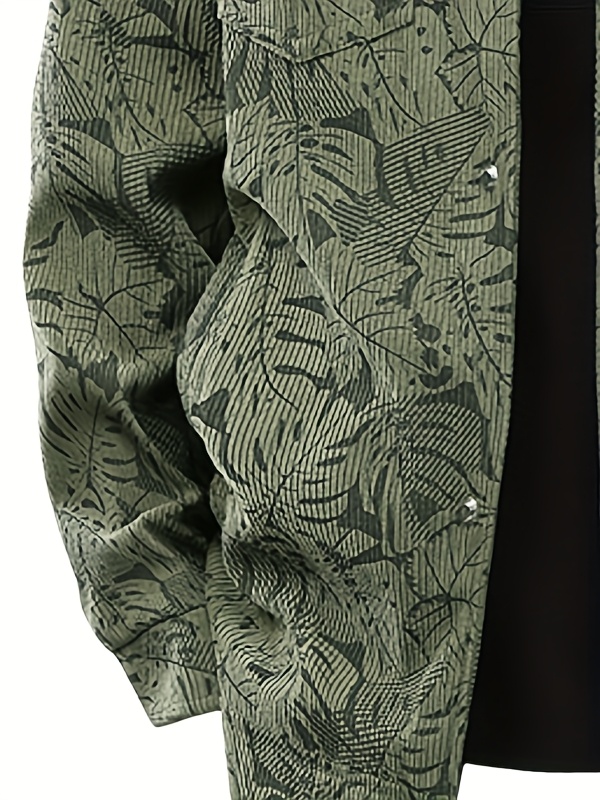 [Tropical Corduroy Jacket] Corduroy Men's Casual Jacket with Tropical Leaf Pattern | Multi-Pocket, Button-Up, All-Season Wear, Everyday Outerwear