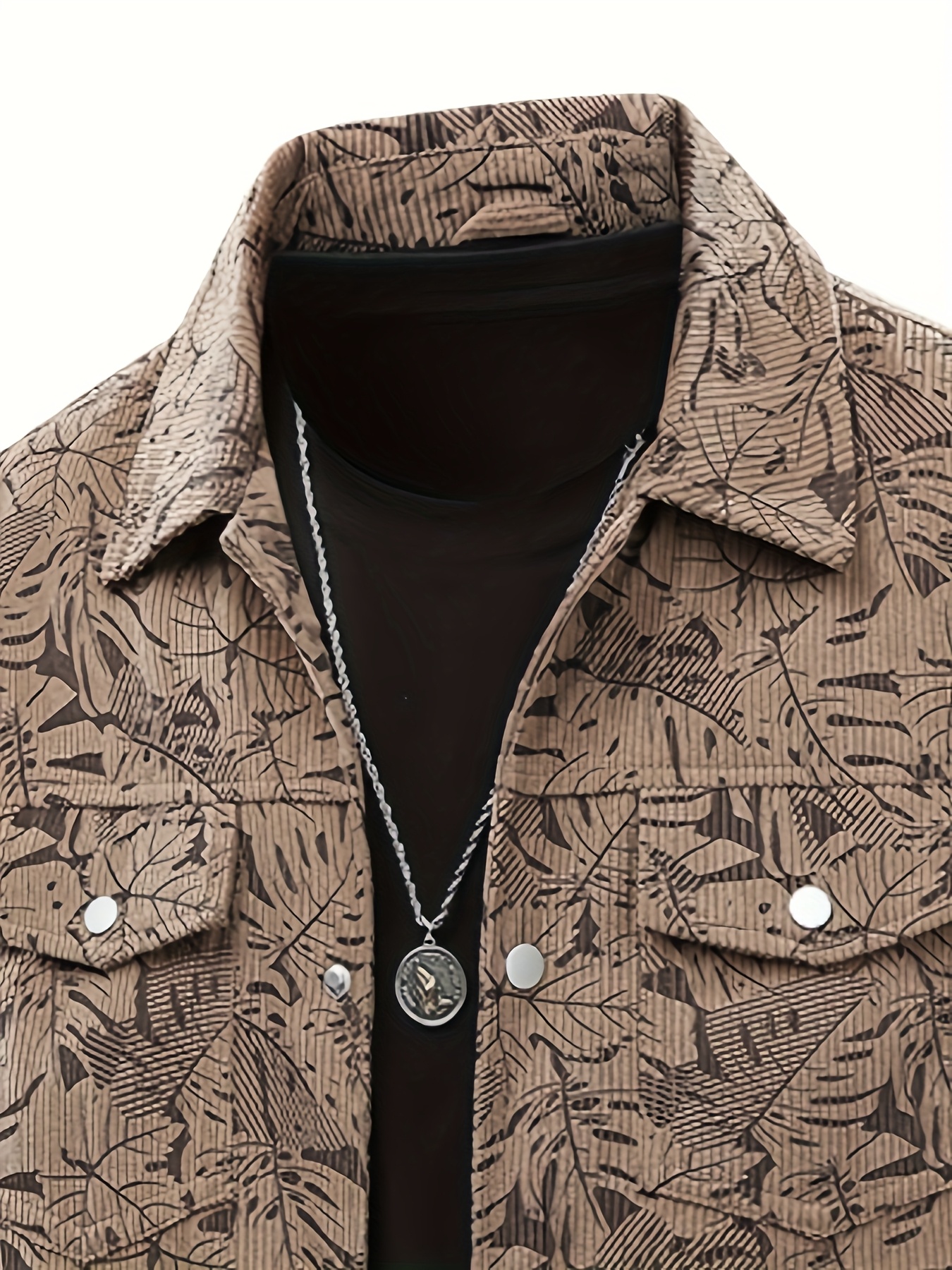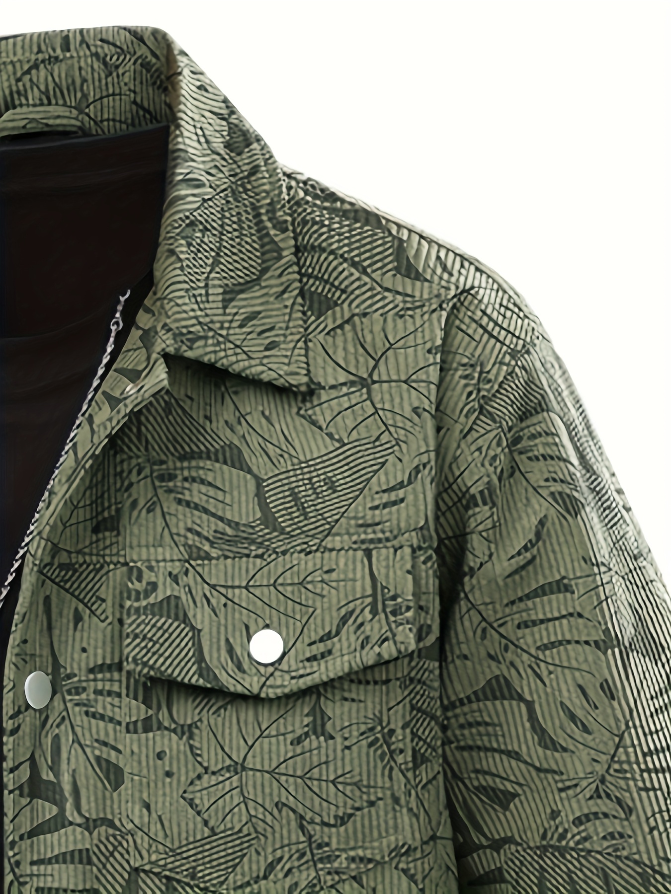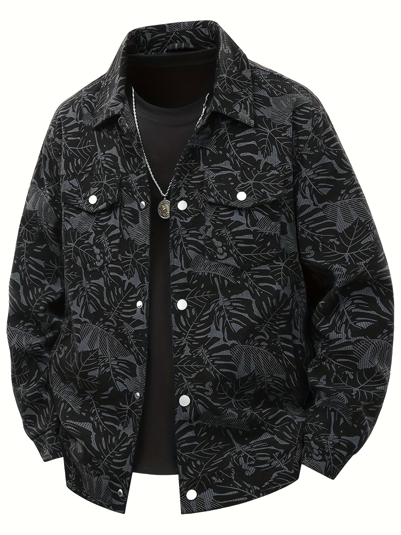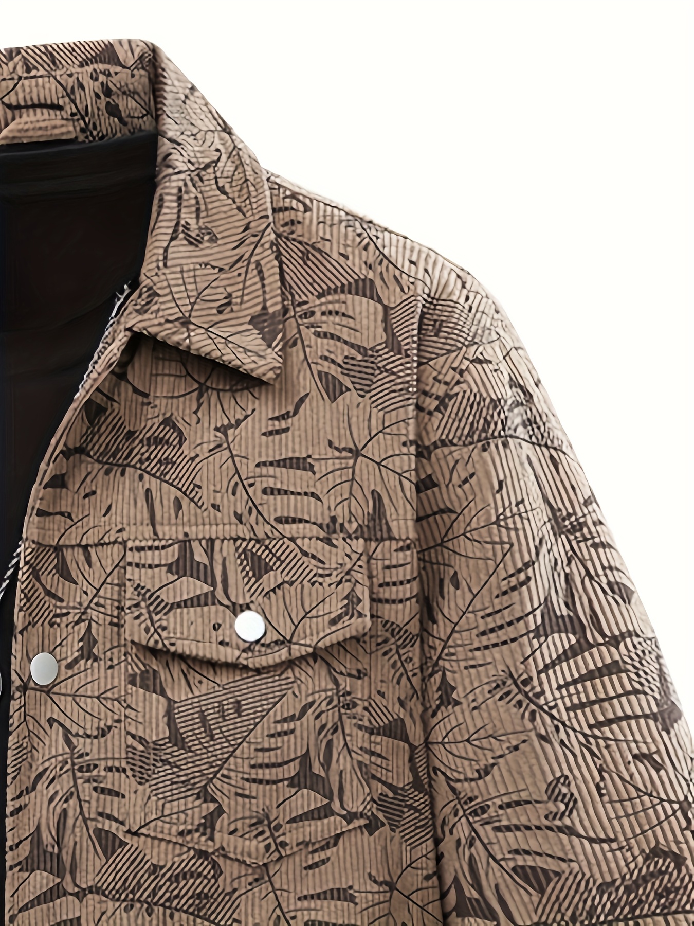 [Tropical Corduroy Jacket] Corduroy Men's Casual Jacket with Tropical Leaf Pattern | Multi-Pocket, Button-Up, All-Season Wear, Everyday Outerwear