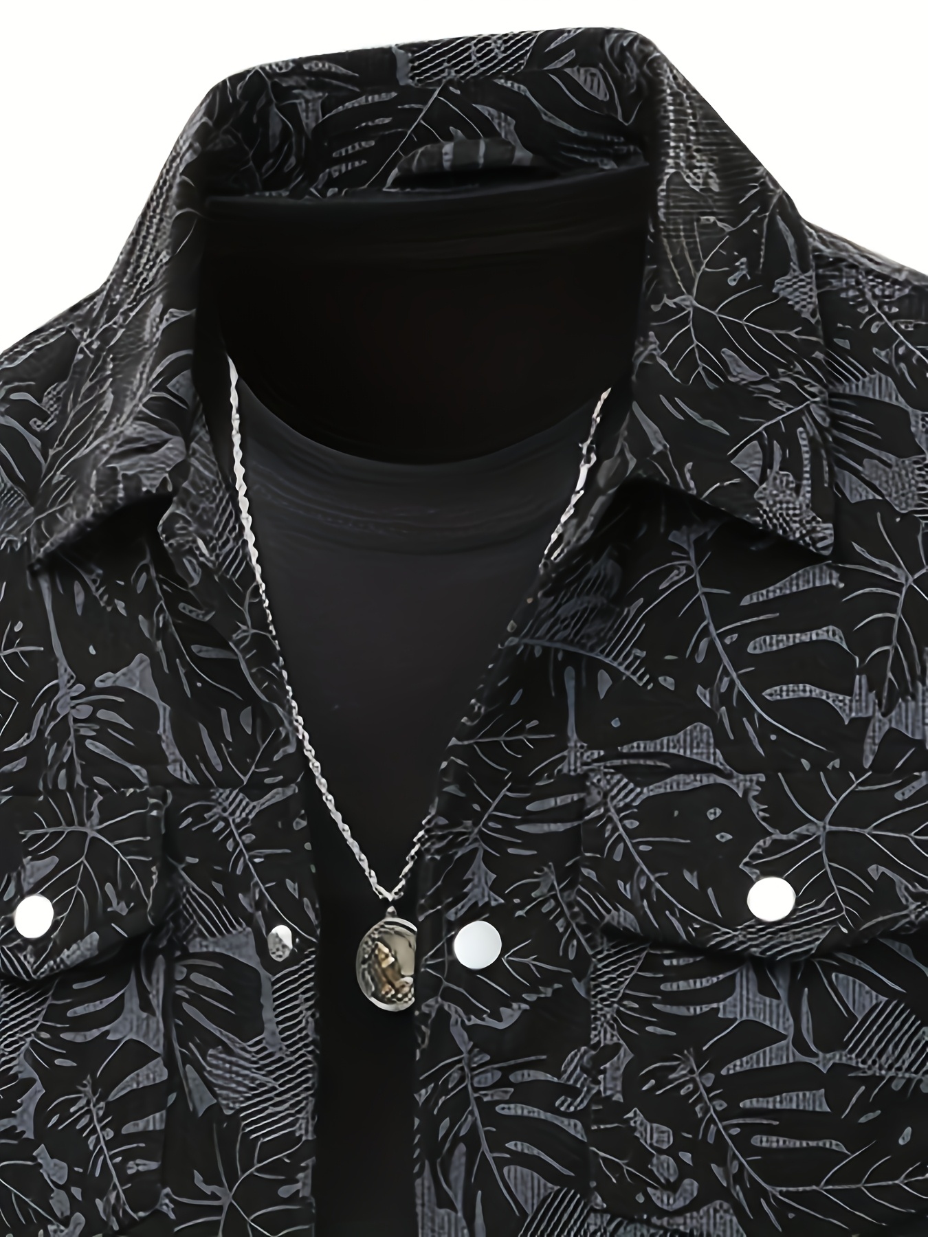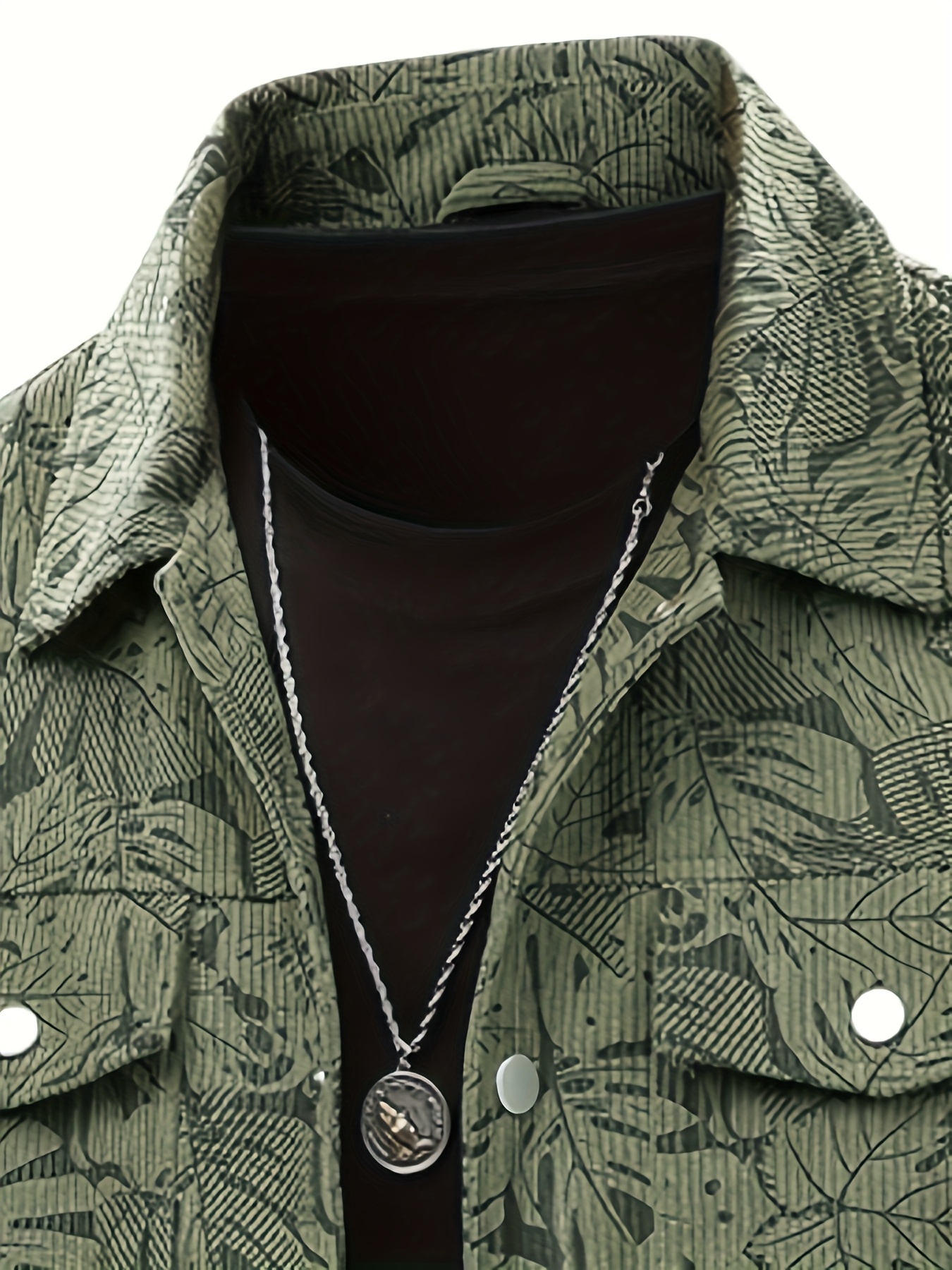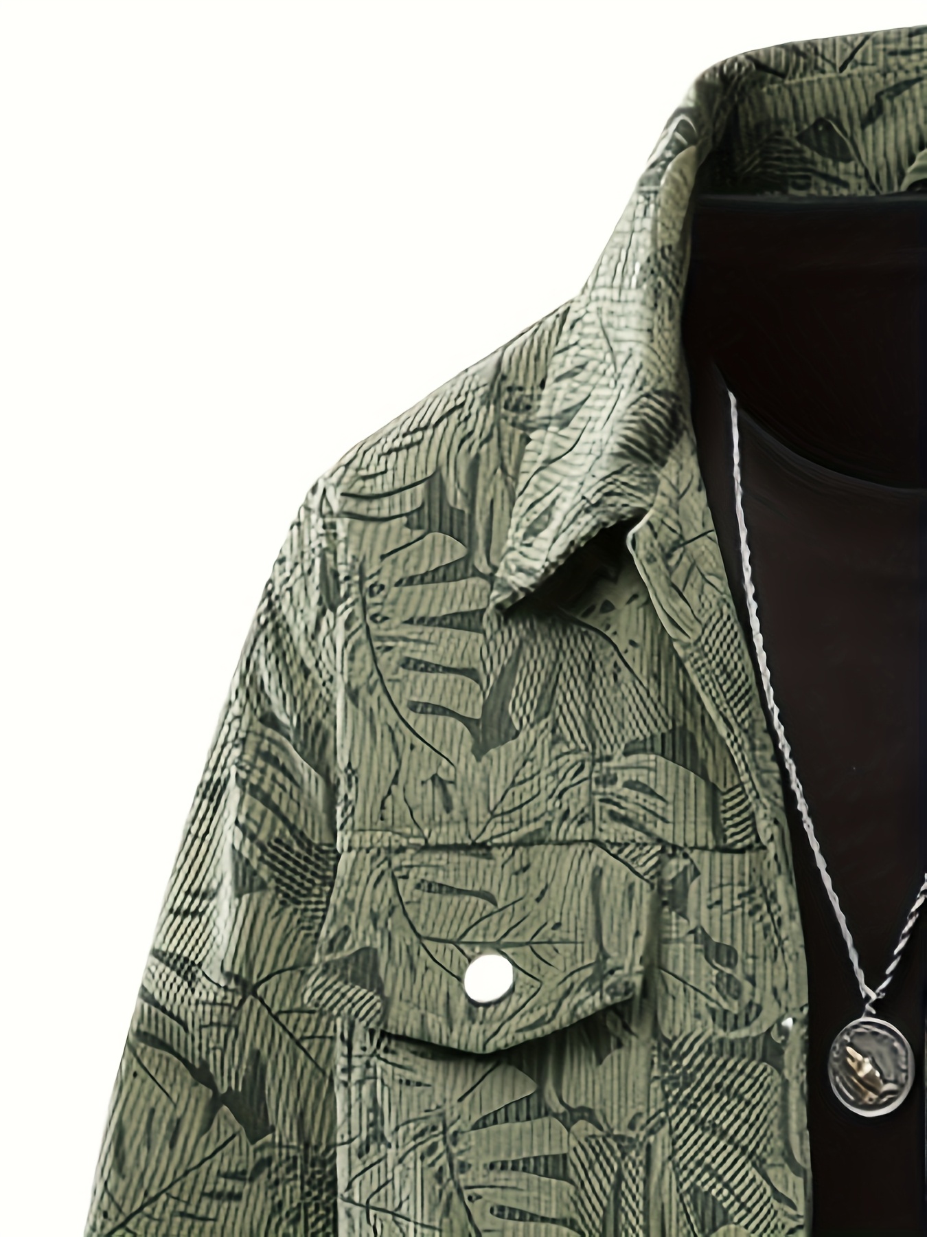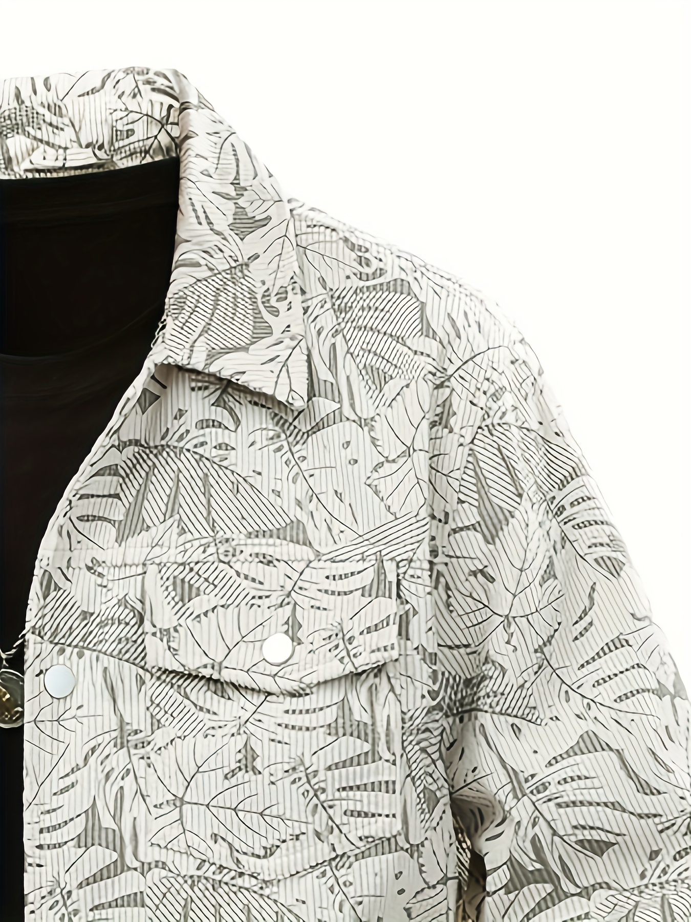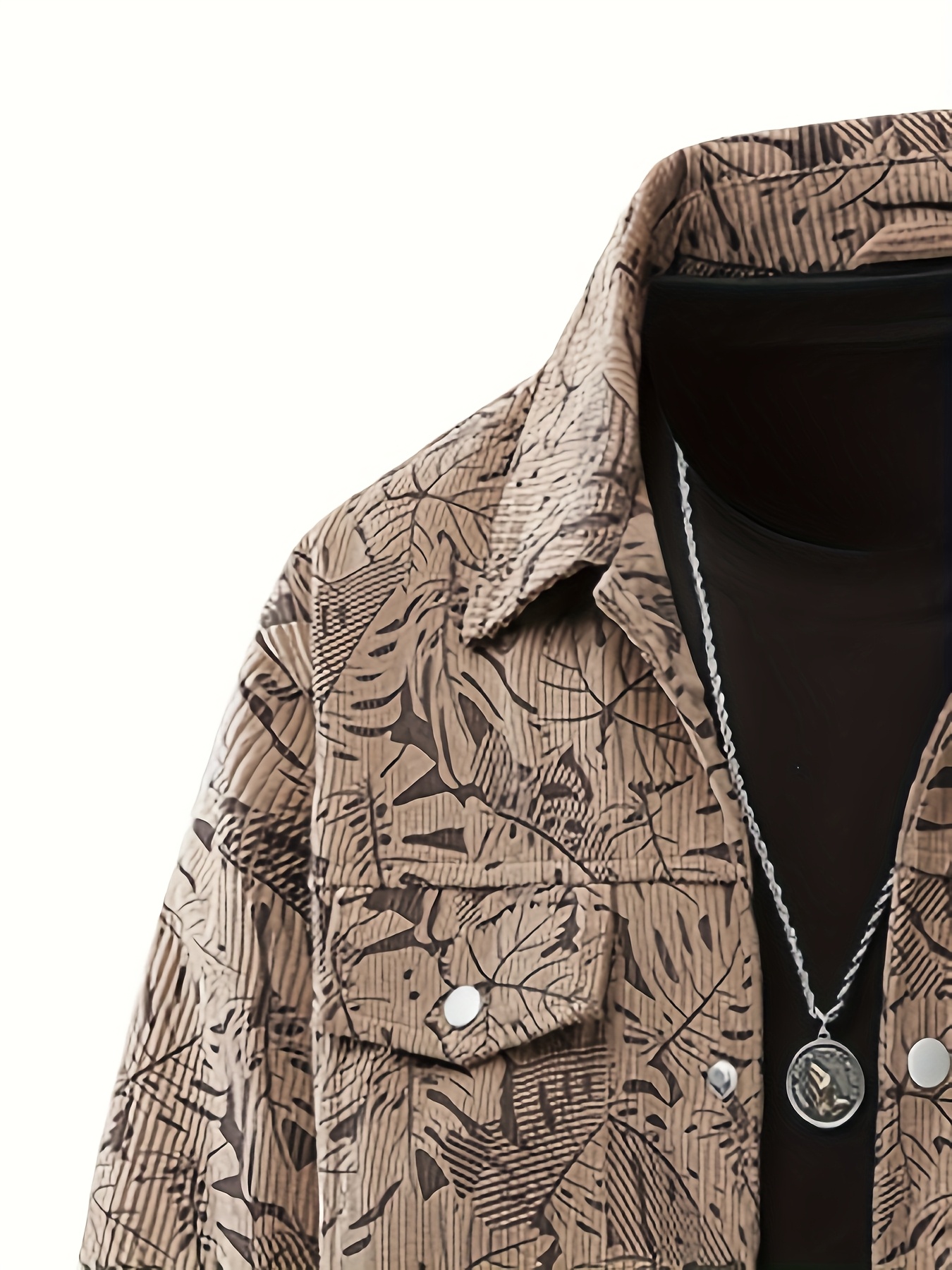 [Tropical Corduroy Jacket] Corduroy Men's Casual Jacket with Tropical Leaf Pattern | Multi-Pocket, Button-Up, All-Season Wear, Everyday Outerwear