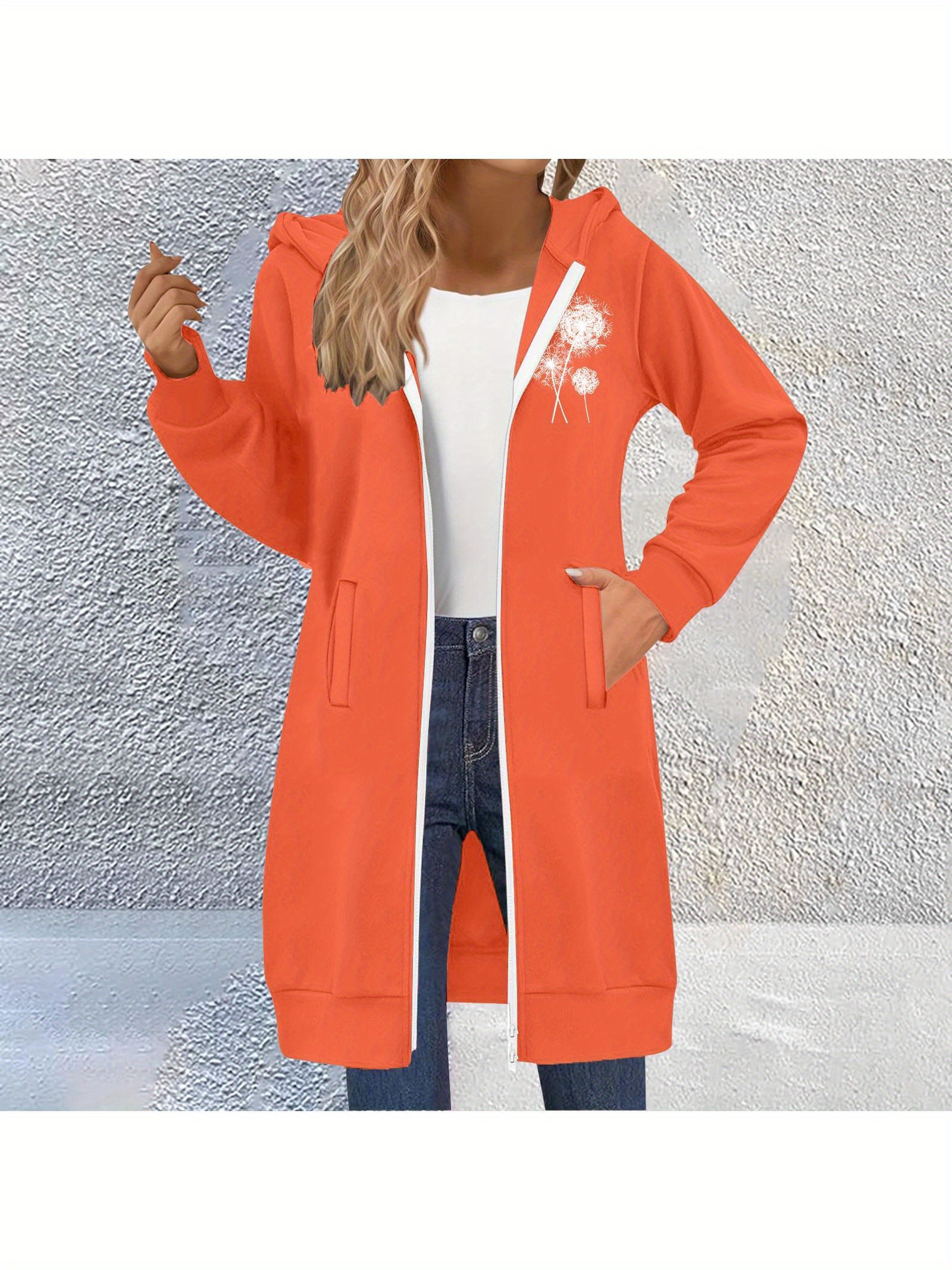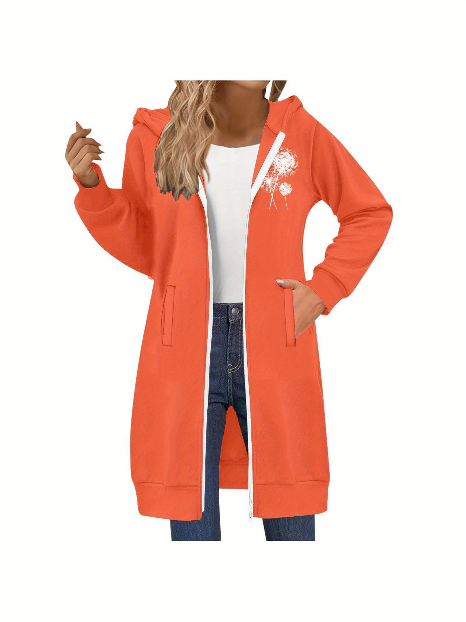 Women's Full-Zip Hooded Fleece Jacket - Double Zipper Winter Coat, Hooded Collar & H-Line Silhouette, Thick Warm Outerwear for Skiing, Snowboarding, Casual Wear - Machine Washable (No Belt) - All-Season Fleece Sweater