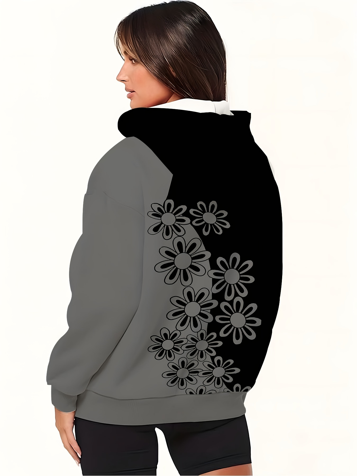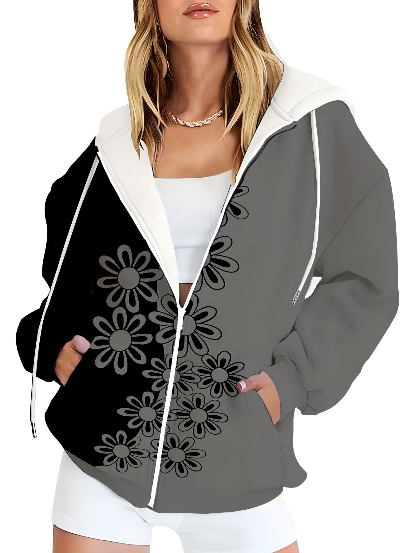 This Women'S Zip-Up Hoodie Features a Two-Tone Design with an Adjustable Drawstring, Floral Patterns, And Is Made from Mid-Stretch Fabric That Is Both Machine Washable And Breathable. It'S a Must-Have for Casual Wear in Spring And Fall