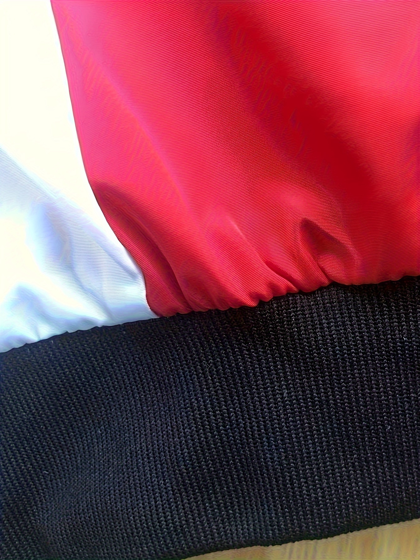 Men'S Color Block Hooded Trench Coat with Red/ Contrast Sleeves & Body - Casual Modern Jacket, Geometric Pattern, Regular Fit, Adjustable Hood & Zipper Closure, Versatile Outerwear for Teens & Young Adults, All-Season Durable Coat