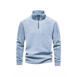 Standing Collar Half-Zip Hoodie for Men | Loose Fit, Casual Style with Pockets and Long Sleeves