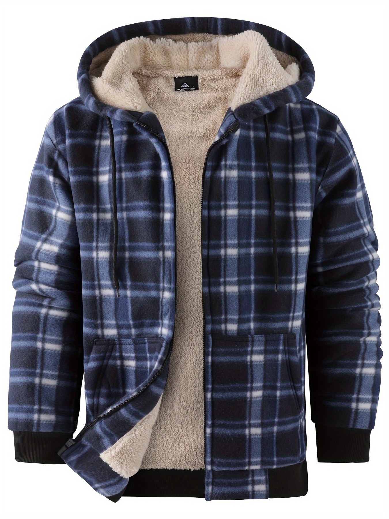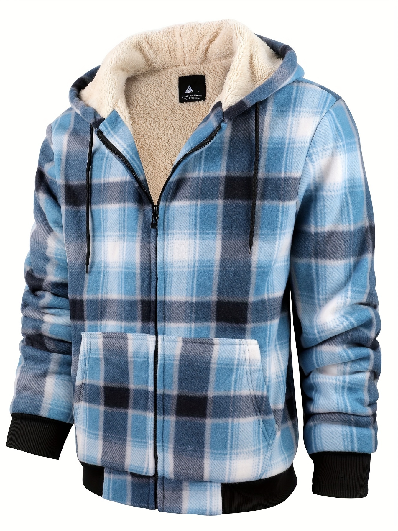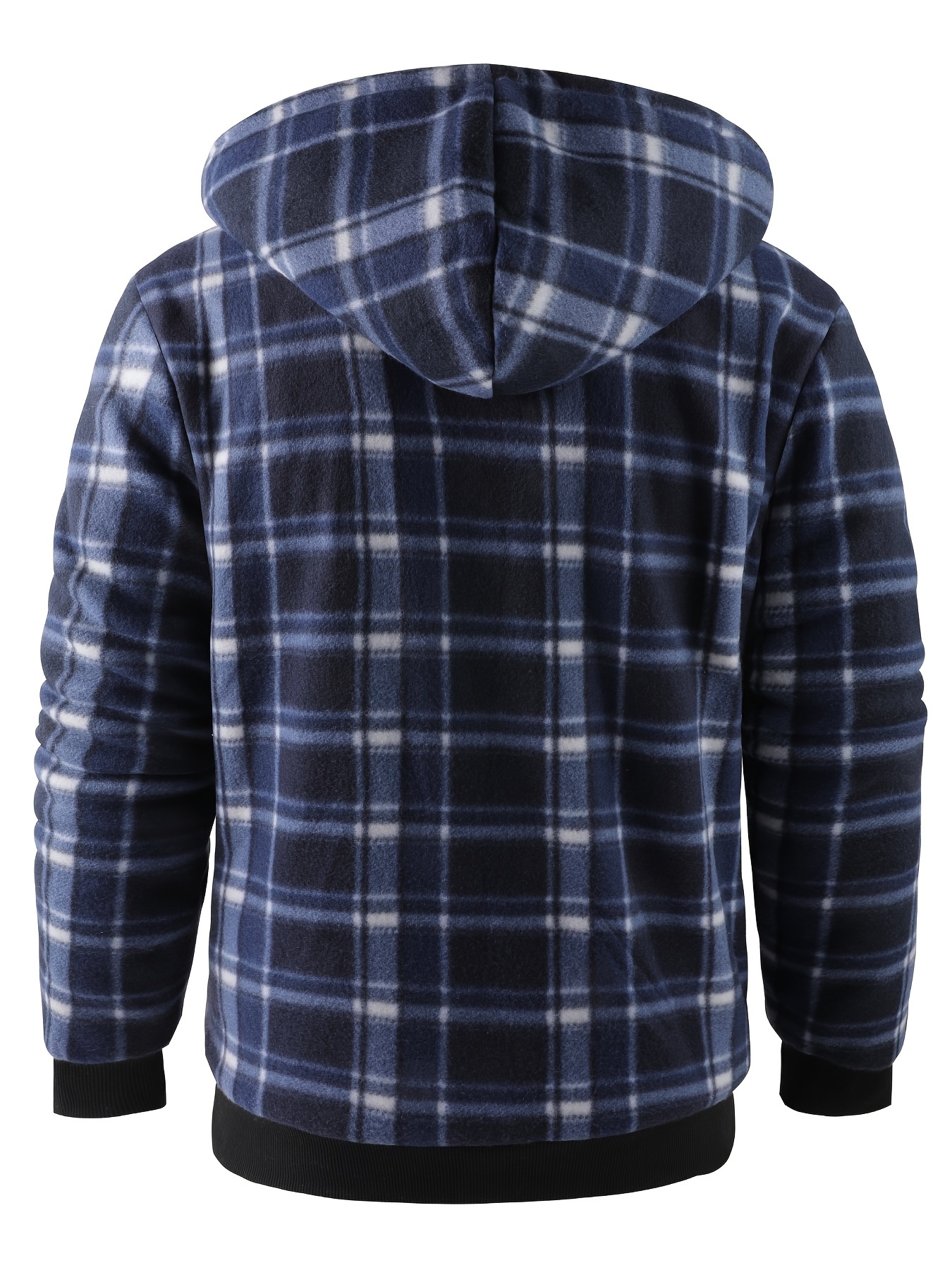 Trendy Hooded Plaid Jacket for Men, Perfect for Autumn And Winter, Made with Fleece And Durable Fabric