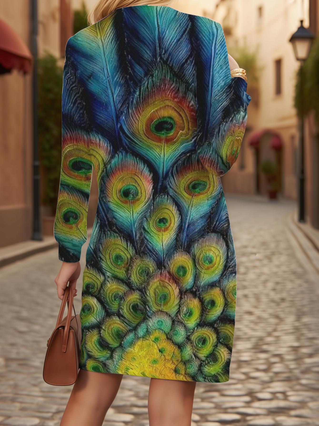 Plus Size Women's 3D Printed Peacock Sweater - Turquoise Turquoise Blue Green Turquoise Yellow Pink Multicolor Oversized H-Line Silhouette, Winter Warm Long Sleeve Crew Neck Casual Pullover, Machine Washable All-Season Blouse (No