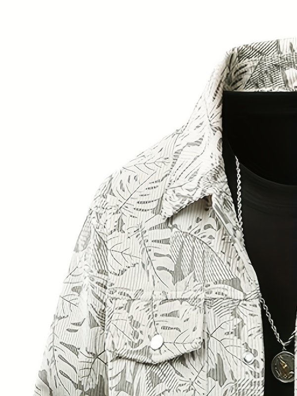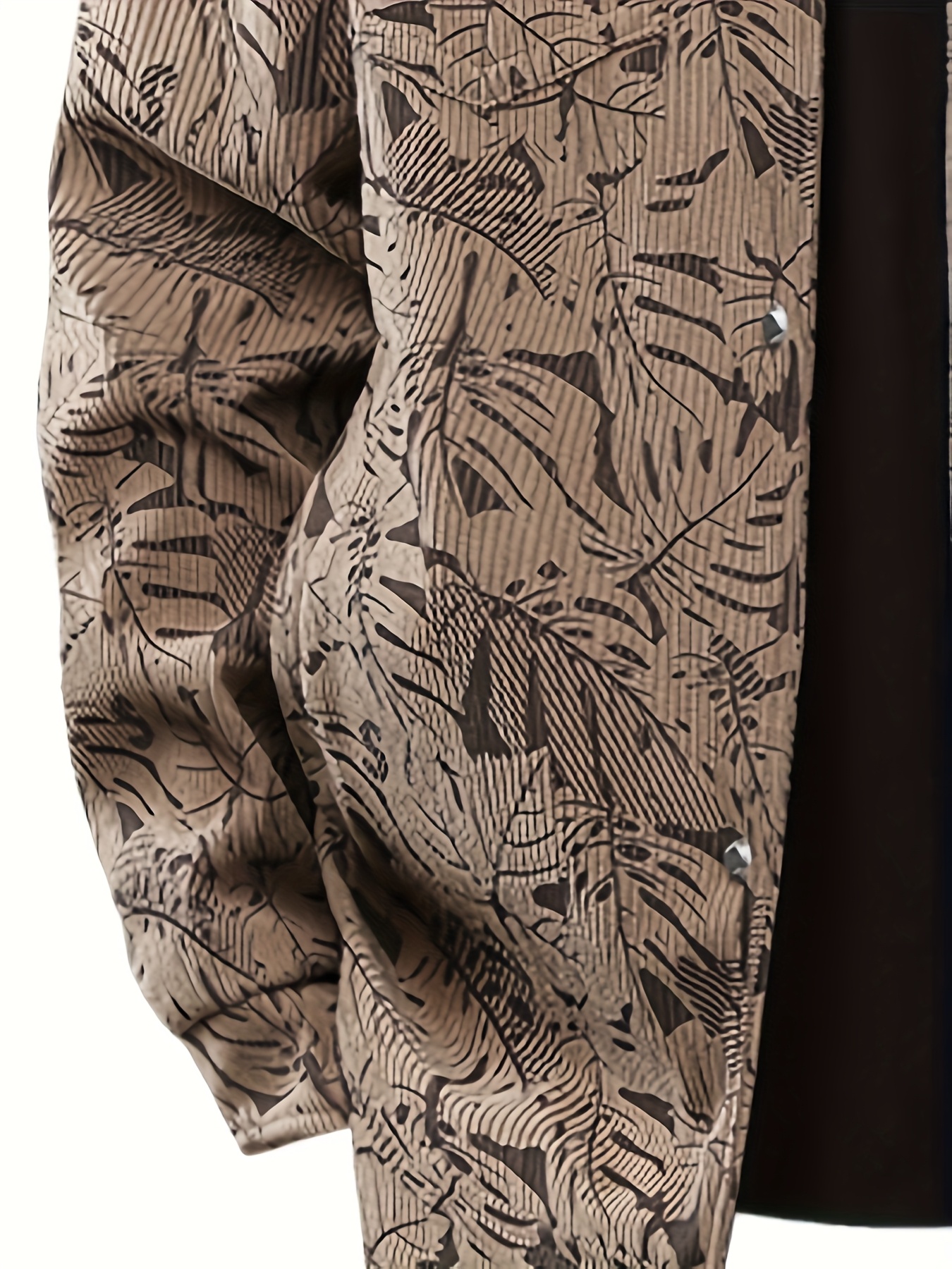 [Tropical Corduroy Jacket] Corduroy Men's Casual Jacket with Tropical Leaf Pattern | Multi-Pocket, Button-Up, All-Season Wear, Everyday Outerwear